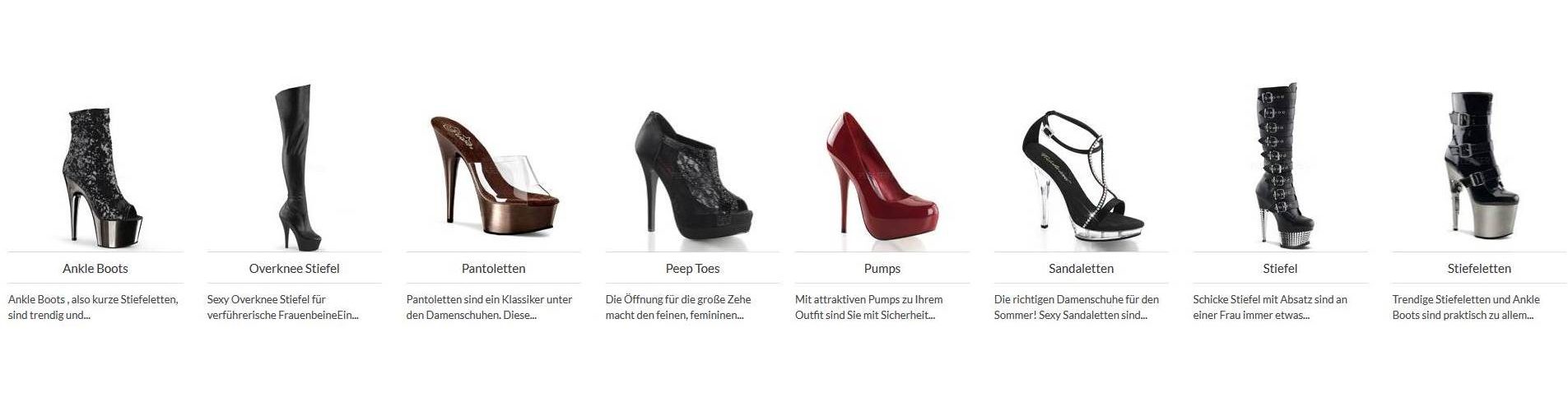 Der Sceenshot zeigt die Shop-Kategorie „High Heels & sexy Damenschuhe“